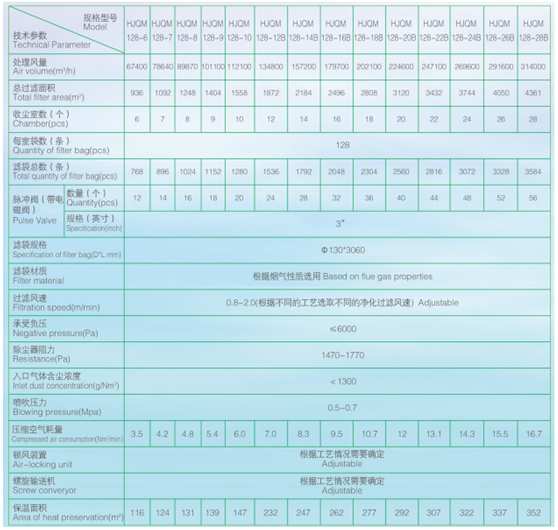 2、表中的處理風(fēng)量是按過濾風(fēng)速為1.2m/min計(jì)算得出的,僅供用塵源點(diǎn)的含塵濃度小于30g/Nm3和過濾風(fēng)速不祥的情況下,直接按表中所標(biāo)注的處理風(fēng)量進(jìn)行選型之用。
